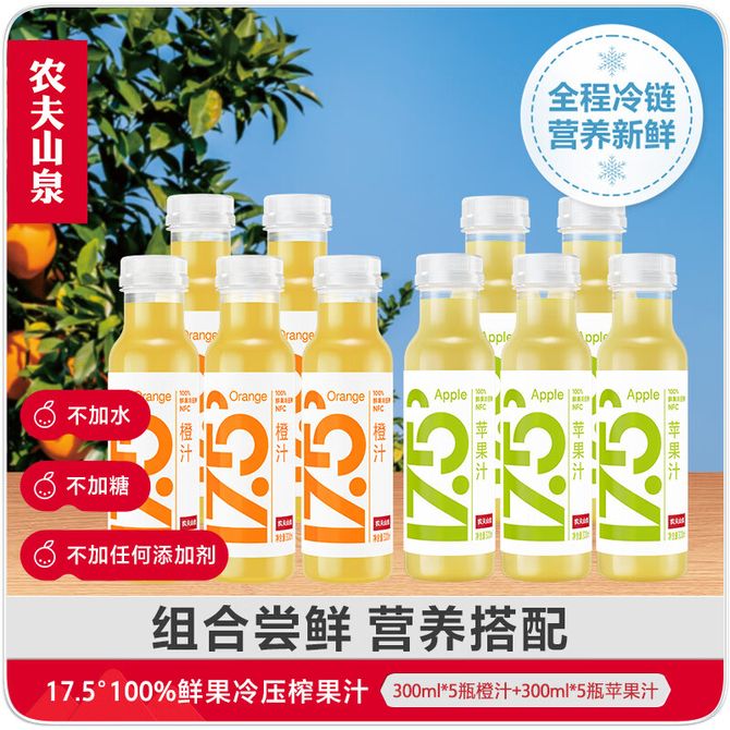 农夫山泉 17.5°NFC果汁100%鲜果冷压榨 苹果汁300ml*5瓶+橙汁300ml*5瓶 组合尝鲜 营养搭配 兑换价格 7400 里程 会员卡别 终身白金卡 白金卡 金卡 银卡 普通卡 儿童卡 服务 由 澳菲类优选 发货并提供售后 规格: 组合 购买数量: 件 库存件 配送地址: 立即购买 加入购物车 成功添加到购物车 关闭 购物车共有 种商品 总金额为: