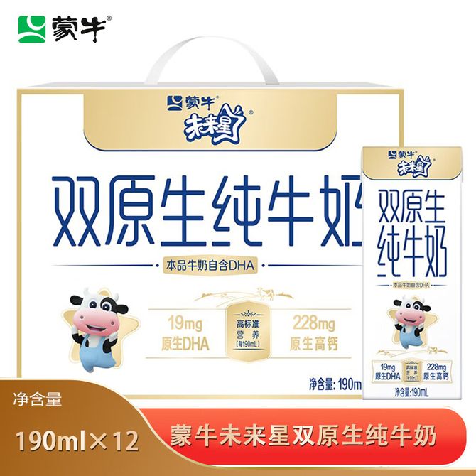 蒙牛 未来星双原生纯牛奶全脂灭菌乳利乐苗条装190ml×12包儿童营养纯牛奶健康早餐搭档 190ml×12包 兑换价格 3500 里程 会员卡别 终身白金卡 白金卡 金卡 银卡 普通卡 儿童卡 服务 由 广西桂人礼互联网科技有限公司 发货并提供售后 规格: 礼盒 购买数量: 件 库存件 配送地址: 立即购买 加入购物车 成功添加到购物车 关闭 购物车共有 种商品 总金额为: 组合销售 产品介绍 产品规格 售后服务 产品咨询 发现好货 蒙牛 特仑苏纯牛奶苗条装250ml×12盒 2900 里程 三元 经典小方白全脂纯牛奶250ml*24盒牛奶 整箱 3400 里程 伊利金典纯牛奶250ml*12盒整箱 2200 里程 三元 极致 全脂纯牛奶250ml*12盒 优质乳蛋白 恪守天然亲和 2900 里程 蒙牛 特仑苏纯牛奶250ml*12盒3.6g乳蛋白礼盒整箱装 2300 里程