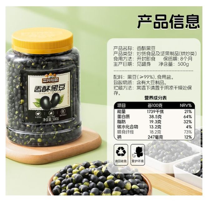 三只松鼠 香酥盐炒黑豆500g量贩装休闲零食炒熟炒货东北土特产坚果