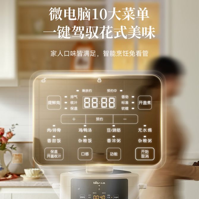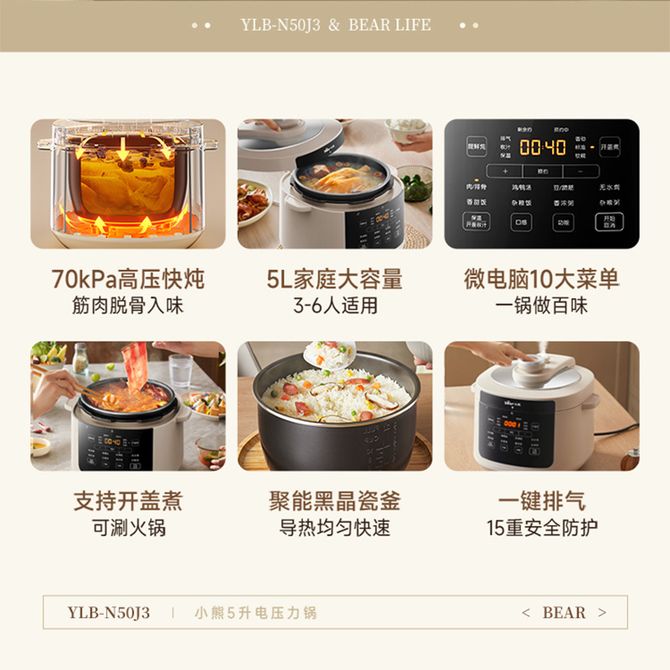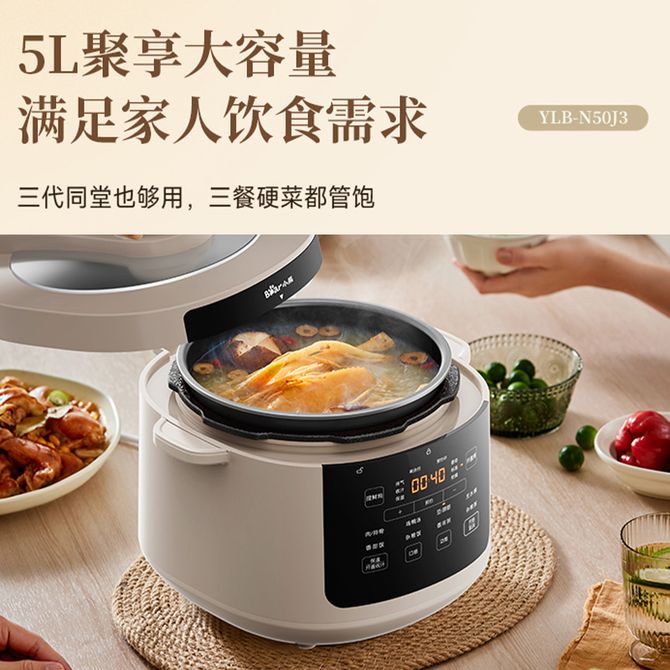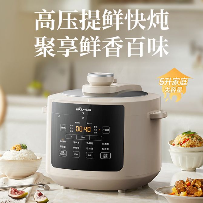 小熊/Bear 电压力锅高压快炖家用多功能电高压锅5L大容量一键排气 5L大容量 微电脑10大菜单 高压快炖 兑换价格 13000 里程 会员卡别 终身白金卡 白金卡 金卡 银卡 普通卡 儿童卡 服务 由 聚品惠家电生活馆 发货并提供售后 颜色: 其他 购买数量: 件 库存件 配送地址: 立即购买 加入购物车 成功添加到购物车 关闭 购物车共有 种商品 总金额为: 组合销售 产品介绍 产品规格 售后服务 产品咨询 发现好货 苏泊尔(SUPOR)电压力锅 6升大容量 智能触控 球釜双胆 开盖收汁 一键排压 SY-60YC8001Q 高压锅 16900 里程 美的/Midea 电压力锅家用5L大容量多功能高压锅双胆一键收汁智能预约不粘电高压锅电饭锅煮粥煲汤锅 一锅双胆【一键收汁入味】 YL50M1-702 10600 里程 苏泊尔(SUPOR) 5L电压力锅家用电高压锅双胆高压电饭锅煮饭智能预约 SY-50YC8186 11300 里程 美的/Midea 电压力锅 【一锅双胆】5L全自动家用智能预约 上蒸下煮 不粘双胆煲汤炖肉 YL50Q3-451 10900 里程 美的/Midea 电压力锅 高压锅家用电压力煲智能预约电饭煲大容量多功能定时预约电饭煲3-8人单胆旋钮款4L MY-E4809 8700 里程