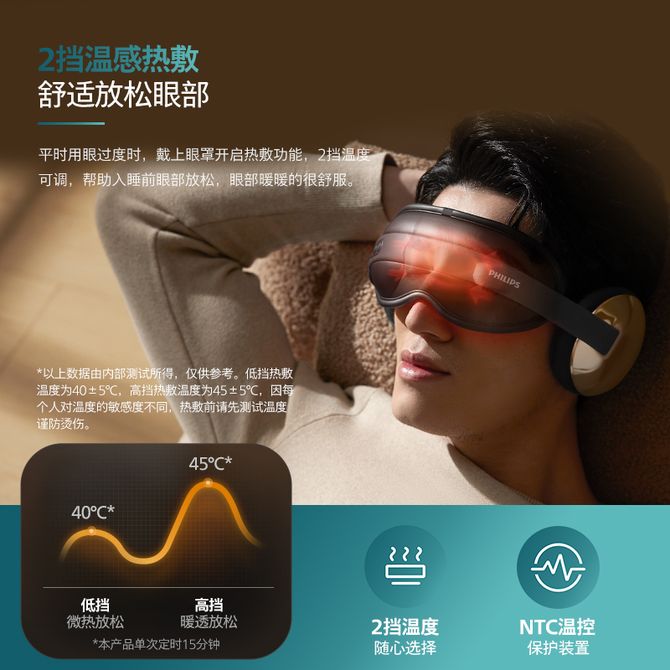 飞利浦/Philips 眼部按摩仪 暖敷音乐眼镜按摩器 热敷眼罩带蓝牙音乐 生日节日礼物实用男女 【热敷按摩】【可折叠】PPM2304E 玫瑰金 光滑皮革x柔软海绵,云柔触感 呵护眼周; 兑换价格 18300 里程 会员卡别 终身白金卡 白金卡 金卡 银卡 普通卡 儿童卡 服务 由 九樱互动家电专营店 发货并提供售后 颜色: 其他 购买数量: 件 库存件 配送地址: 立即购买 加入购物车 成功添加到购物车 关闭 购物车共有 种商品 总金额为: