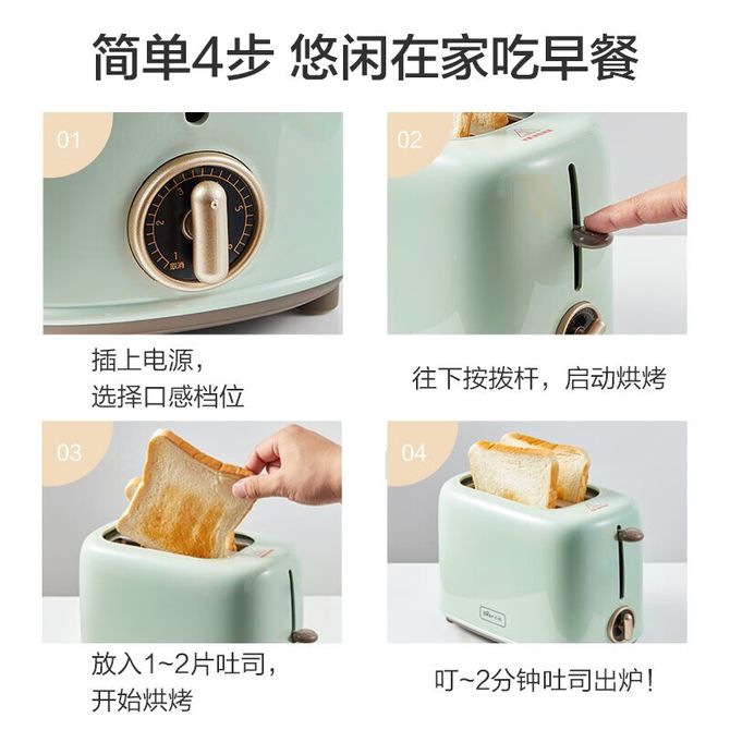 小熊/Bear 多士炉 早餐烤吐司机烤三明治面包片家用多功能轻食机 6档调火力,双面立体炙烤,加宽大卡槽 兑换价格 3500 里程 会员卡别 终身白金卡 白金卡 金卡 银卡 普通卡 儿童卡 服务 由 聚品惠家电生活馆 发货并提供售后 颜色: 绿色 购买数量: 件 库存件 配送地址: 立即购买 加入购物车 成功添加到购物车 关闭 购物车共有 种商品 总金额为: 组合销售 产品介绍 产品规格 售后服务 产品咨询 发现好货 小熊/Bear 多士炉家用小型吐司三明治面包机烤面包机馒头片机加热机速烤DSLC02W1浅绿色 3500 里程 小熊/Bear 多士炉 面包机 烤面包机家用双面加热烘烤全自动小型早餐三明治吐司机土司机 烤面包片机 绿色-DSL-C02W1 3500 里程 小熊/Bear 面包机 烤面包片机烤吐司机多士炉家用多功能双面立体匀烤6档调节全自动三明治早餐机 4400 里程 东菱/Donlim 全自动面包机家用揉面机自动撒果料 可预约 多功能和面机DL-TM018 17000 里程 小熊/Bear 面包机 DSL-C02W1 3500 里程