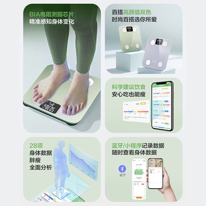 小熊/Bear 体重秤家用高精准塑形减脂体重管理健康秤(充电款)绿色 28项身体数据 蓝牙/小程序 支持多人建档(详情共用,此款为绿色) 兑换价格 3000 里程 会员卡别 终身白金卡 白金卡 金卡 银卡 普通卡 儿童卡 服务 由 聚品惠家电生活馆 发货并提供售后 颜色: 绿色 购买数量: 件 库存件 配送地址: 立即购买 加入购物车 成功添加到购物车 关闭 购物车共有 种商品 总金额为: 组合销售 产品介绍 产品规格 售后服务 产品咨询 发现好货 奥克斯/AUX 智能体重秤ACC-5110A1充电款 1700 里程 奥克斯/AUX 体重秤体脂称 3001W1M 充电款 2000 里程 小米体重秤2 家用健康秤电子秤 高精度智能分析隐藏式LED屏幕 4400 里程 小米 家用健康秤电子秤高精度 人物双模式 APP数据测量智能体重秤S200白色 3900 里程 美的/Midea 体重秤充电家用人体电子秤数显称重健康称 电池款 2200 里程