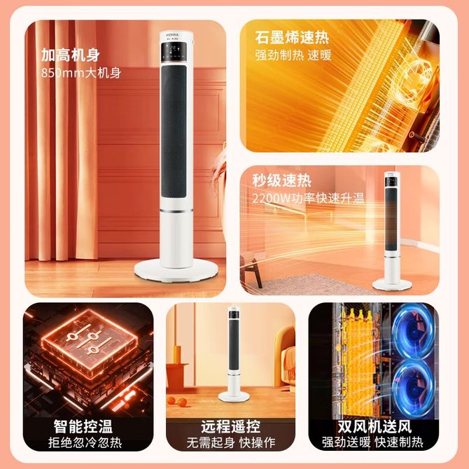 康佳/Konka 家用石墨烯暖风机 立式取暖器电暖气电暖风热风机暖风摇头冬天取暖神器遥控/触控操控 石墨烯速热取暖器 遥控/触控操控 2200W功率速热 双风机送风 智能控温 兑换价格 7400 里程 会员卡别 终身白金卡 白金卡 金卡 银卡 普通卡 儿童卡 服务 由 广西自贸区京通桂达科技发展有限公司 发货并提供售后 颜色: 其他 购买数量: 件 库存件 配送地址: 立即购买 加入购物车 成功添加到购物车 关闭 购物车共有 种商品 总金额为: