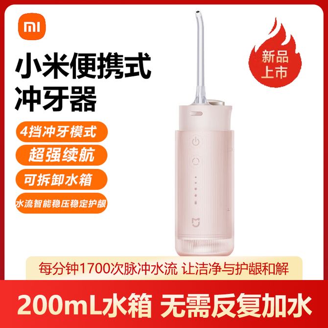 小米 便携式冲牙器洗牙器水牙线云感伞射冲牙技术收纳喷嘴4挡冲牙模式 粉色 3支喷头 云感伞射冲牙技术,200mL抽拉水箱,4挡冲牙模式,机身收纳喷嘴 兑换价格 12200 里程 会员卡别 终身白金卡 白金卡 金卡 银卡 普通卡 儿童卡 服务 由 广西桂福礼供应链管理有限公司 发货并提供售后 颜色: 粉色 购买数量: 件 库存件 配送地址: 立即购买 加入购物车 成功添加到购物车 关闭 购物车共有 种商品 总金额为: 组合销售 产品介绍 产品规格 售后服务 产品咨询 发现好货 小米 声波电动牙刷家用男女高频振动充电式防水牙刷 T300标准版 4400 里程 飞利浦/Philips 电动牙刷头HX9021适配HX6511/HX6730/HX6761/HX3226/ 2400 里程 小米 米家声波电动牙刷 声波洁牙柔感护龈 超长续航 T200蓝色 4400 里程 小米 声波电动牙刷家用电牙刷男女士牙刷高频振动充电式防水牙刷牙齿清洁 4400 里程 米家 电动冲牙器 白色 200mL大容量水箱 4挡模式附带模式记忆功能 9700 里程