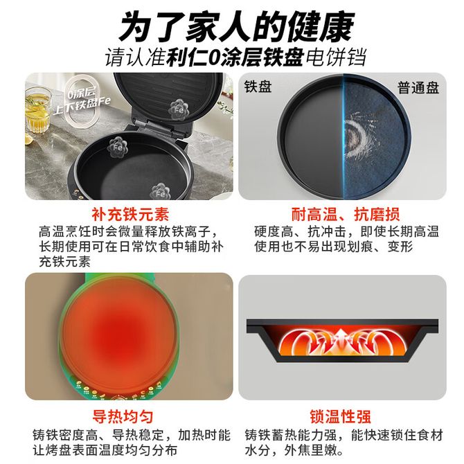 利仁 铁盘电饼铛LR-XTR3281 家用0涂层烙饼锅双面加热电饼档烙饼专用锅无涂层电煎锅1800W大火力早餐机 家用0涂层烙饼锅双面加热电饼档烙饼专用锅无涂层电煎锅1800W大火力早餐机 兑换价格 24800 里程 会员卡别 终身白金卡 白金卡 金卡 银卡 普通卡 儿童卡 服务 由 纳华优选 发货并提供售后 颜色: 蓝色 购买数量: 件 库存件 配送地址: 立即购买 加入购物车 成功添加到购物车 关闭 购物车共有 种商品 总金额为: 组合销售 产品介绍 产品规格 售后服务 产品咨询 发现好货 苏泊尔(SUPOR)电饼铛家用 双面加热煎饼铛煎烤机三明治机烙饼锅早餐机25mm加深烤盘火力可调JD31A847A 6500 里程 苏泊尔(SUPOR) 电饼铛 自动煎烤机 电火锅多功能 加大加深60mm双加热烙饼 锅面煎饼电饼档 两档火力 JT30A818 5700 里程 苏泊尔(SUPOR)电饼铛家用双面加热电饼档煎烤机烙饼机双面悬浮加热早餐机三明治机JJ30A648-Q 5400 里程 美的(Midea)电饼铛家用智能双面加热煎烤机烙饼机蛋饼机薄饼机煎饼烙饼锅JHN30F 4800 里程 小熊/Bear 八角电烤盘家用无烟电烤炉多功能烤涮电火锅烤肉锅 6500 里程