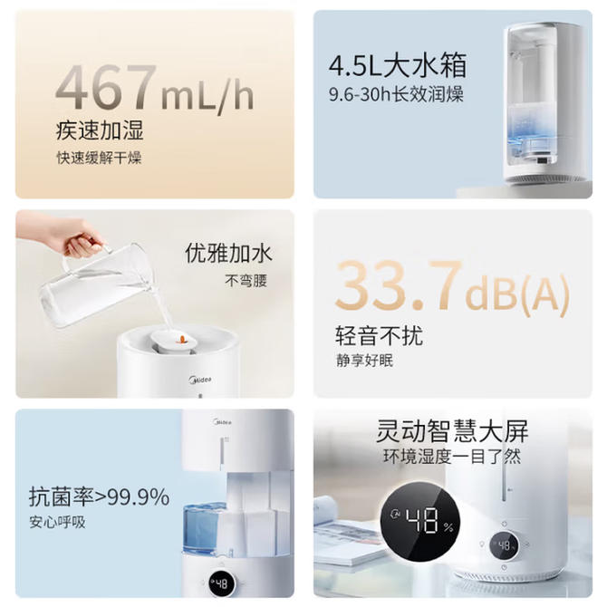 组合销售 产品介绍 产品规格 售后服务 产品咨询 发现好货 美的/Midea 加湿器 SC-3G40S 大容量家用 上加水升级款 4200 里程 小熊/Bear 加湿器 卧室轻音婴儿办公室桌面大容量 家用迷你低噪大雾量空气加湿净化 空调伴侣 6100 里程 美的/Midea 加湿器卧室婴儿办公桌面加湿大容量家用空气加湿器婴儿低噪上加水升级款 SC-3G40S 5000 里程 美的/Midea 空气加湿器家用卧室母婴幼儿鼻炎静音除菌超大雾量取暖补水小型工业喷雾雾化器CS-3VWL 5200 里程 美的(Midea)加湿器【410ml/h加大雾量】除菌大雾量卧室婴儿办公室家用便捷上加水大容量加湿空气净化极速加湿CS-3VWL 5700 里程
