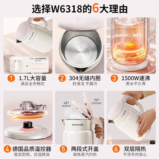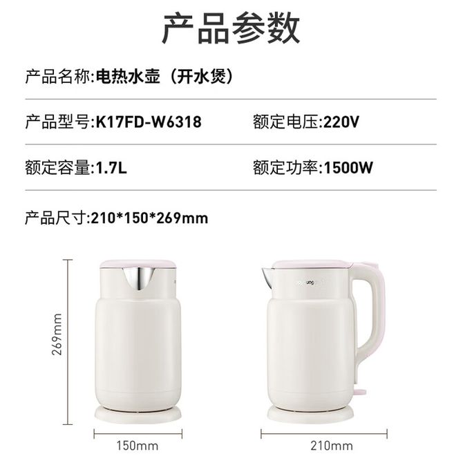 九阳/Joyoung 电热水壶3 04不锈钢无缝内胆双层防烫 全自动断电烧水壶1.7L K17FD-W6318 两段式开盖避免蒸汽灼伤 双层隔热不烫手的安心 兑换价格 4300 里程 会员卡别 终身白金卡 白金卡 金卡 银卡 普通卡 儿童卡 服务 由 成都安泰盛世商贸有限公司 发货并提供售后 颜色: 米白色 购买数量: 件 库存件 配送地址: 立即购买 加入购物车 成功添加到购物车 关闭 购物车共有 种商品 总金额为: