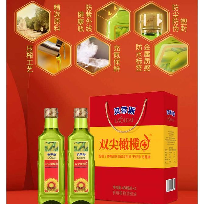 贝蒂斯/BETIS 双尖橄榄+葵花橄榄调和油468ml*2瓶礼盒 双尖橄榄+葵花籽油 兑换价格 5900 里程 会员卡别 终身白金卡 白金卡 金卡 银卡 普通卡 儿童卡 服务 由 全食行 发货并提供售后 油品规格: 468ml 购买数量: 件 库存件 配送地址: 立即购买 加入购物车 成功添加到购物车 关闭 购物车共有 种商品 总金额为: 组合销售 产品介绍 产品规格 售后服务 产品咨询 发现好货 珍佰粮菜籽油5L 5500 里程 长寿花 金胚玉米油食用油非转基因压榨一级 1.8L 2200 里程 福临门 一级大豆油900ML/瓶 优质家用食用油 1100 里程 福临门 家香味食用油 沂蒙土榨 花生仁油900ml 1300 里程 长寿花金胚玉米油1.8L 2400 里程