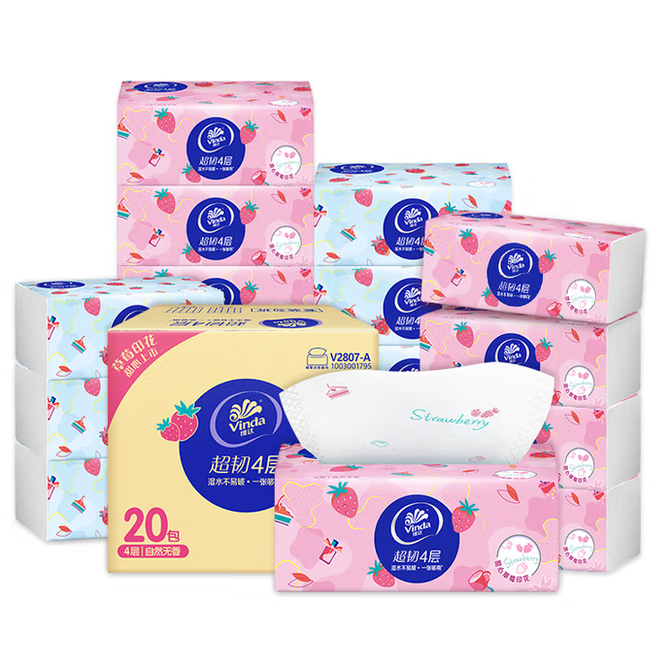 维达 抽纸纸巾高颜值卫生纸超韧草莓印花4层90抽20包整箱官方正品 4层 90抽*20包 90抽*20包/箱,新旧随机发 兑换价格 2500 里程 会员卡别 终身白金卡 白金卡 金卡 银卡 普通卡 儿童卡 服务 由 臻雀个护馆 发货并提供售后 包装数量: 箱 购买数量: 件 库存件 配送地址: 立即购买 加入购物车 成功添加到购物车 关闭 购物车共有 种商品 总金额为: 组合销售 产品介绍 产品规格 售后服务 产品咨询 发现好货 维达卷纸 卫生纸实惠装厕纸家用厕所纸巾手纸整箱批有芯大卷家庭装 1200-2300 里程 维达 Vinda 卷纸 140g/卷*10卷 蓝色经典3层卫生纸 1300 里程 心相印抽纸 茶语丝享系列 量贩家庭装 3层*100抽*4包(茶香 压花) 1100 里程 心相印 经典系列 二层面巾纸 180抽*6包*1提 1100 里程 维达Vinda 超韧系列抽纸(3层*130抽*6包) 原生木浆卫生餐巾纸婴儿面巾纸 6包优惠装 1100 里程