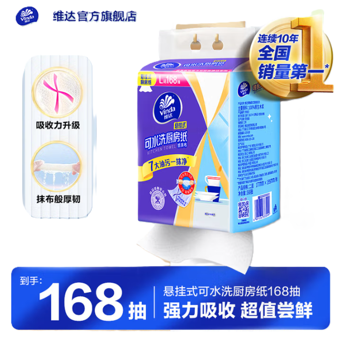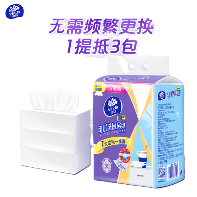 维达 悬挂式厨房用纸 家庭装可水洗 随挂随抽 油污一抹净 168抽*1提 168抽*1提,新旧随机发货 兑换价格 1100 里程 会员卡别 终身白金卡 白金卡 金卡 银卡 普通卡 儿童卡 服务 由 念家生活馆 发货并提供售后 包装数量: 1提 购买数量: 件 库存件 配送地址: 立即购买 加入购物车 成功添加到购物车 关闭 购物车共有 种商品 总金额为: 组合销售 产品介绍 产品规格 售后服务 产品咨询 发现好货 维达卷纸 卫生纸实惠装厕纸家用厕所纸巾手纸整箱批有芯大卷家庭装 1200-2300 里程 维达 Vinda 卷纸 140g/卷*10卷 蓝色经典3层卫生纸 1300 里程 心相印抽纸 茶语丝享系列 量贩家庭装 3层*100抽*4包(茶香 压花) 1100 里程 心相印 经典系列 二层面巾纸 180抽*6包*1提 1100 里程 维达Vinda 超韧系列抽纸(3层*130抽*6包) 原生木浆卫生餐巾纸婴儿面巾纸 6包优惠装 1100 里程