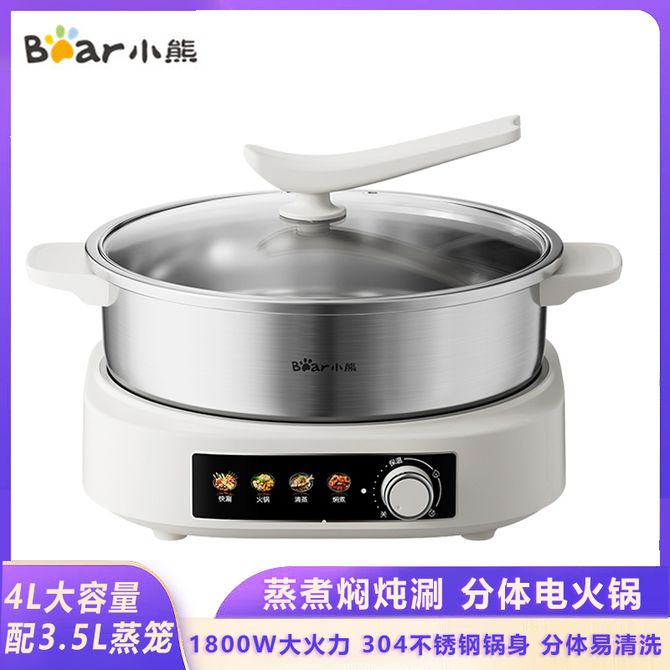 小熊/Bear 分体式电火锅家用电煮锅4L大容量304不锈钢电蒸锅电火锅火锅专用锅多功能电热锅多用途锅 4L大容量 配3.5L蒸笼 蒸煮焖炖涮 分体电火锅 1800W大火力 304不锈钢锅身 分体易清洗 兑换价格 10900 里程 会员卡别 终身白金卡 白金卡 金卡 银卡 普通卡 儿童卡 服务 由 广西自贸区京通桂达科技发展有限公司 发货并提供售后 颜色: 其他 购买数量: 件 库存件 配送地址: 立即购买 加入购物车 成功添加到购物车 关闭 购物车共有 种商品 总金额为: