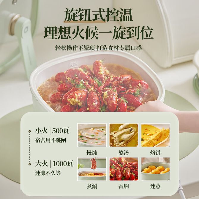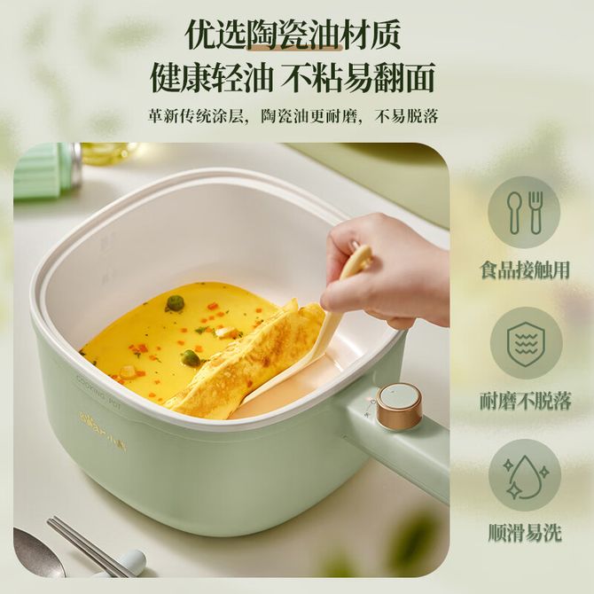 小熊/Bear 家用电煮锅3L小巧容量多功能一体电热锅旋钮式控温 小电锅