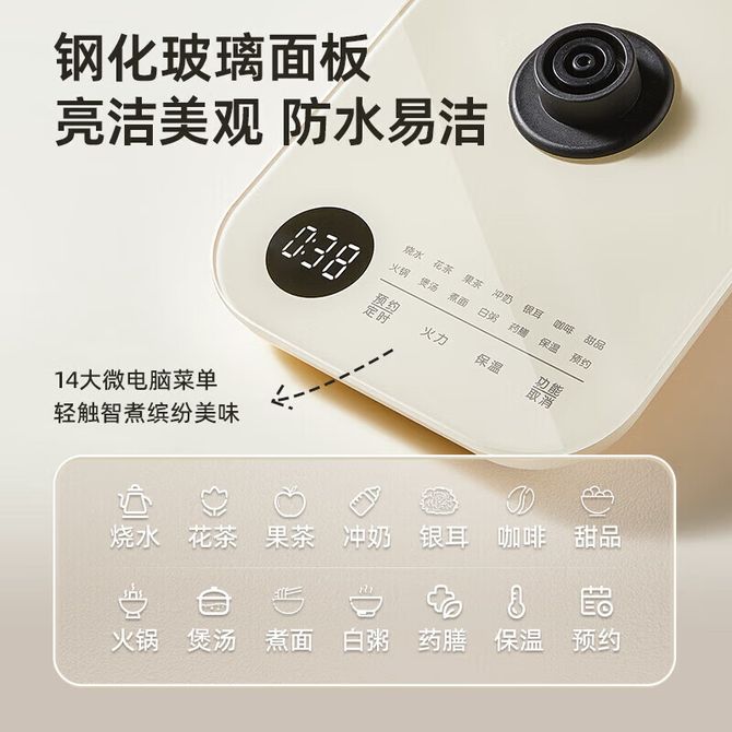 组合销售 产品介绍 产品规格 售后服务 产品咨询 发现好货 九阳/Joyoung 养生壶1.5L茶具电茶壶煮茶壶花茶壶玻璃煮茶器煎药壶中药锅药膳电水壶烧水壶 3900 里程 美的/Midea 养生壶 1.5L家用多功能小型全自动办公室烧水壶加厚玻璃煮茶热水壶 MK-YS15P201 4200 里程 美的/Midea 养生壶 1.5L家用养生壶全自动玻璃烧水壶24h预约烧水壶12小时防干烧保护智能恒温 MK-YS15P202 3500 里程 九阳/Joyoung 养生壶迷你玻璃花茶壶煮茶器 12大功能11档温度 电水壶热水壶烧水壶 1.5L DGD1506BQ 3900 里程 美的/Midea 养生壶 1.5L全自动电热水壶 24h预约12小时智能恒温 14大功能11档控温 花茶壶煮茶器MK-Y12Q 3500 里程