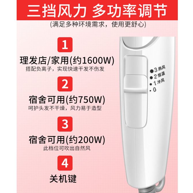 组合销售 产品介绍 产品规格 售后服务 产品咨询 发现好货 超人/SID 电吹风家用吹风机大功率负离子大风力速干低噪音便携吹风筒DJ818系列 3800 里程 徕芬 Laifen SE Lite 家用高速吹风机大风力速干低噪学生宿舍便携风筒 10000 里程 永日 蓝光新款可折叠便携式大风量速干负离子电吹风 YR-6228 4700 里程 超人(SID)电吹风机家用大功率吹风筒静音负离子电风吹RD72030 5700 里程 奥克斯/AUX 吹风机 家用负离子护发恒温护发电吹风AH7800 2400 里程