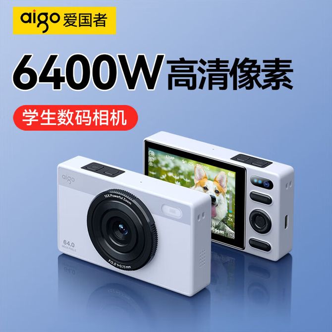 爱国者(aigo) 数码相机E6 6400W像素高清拍照入门相机 64GB内存标准版 粉