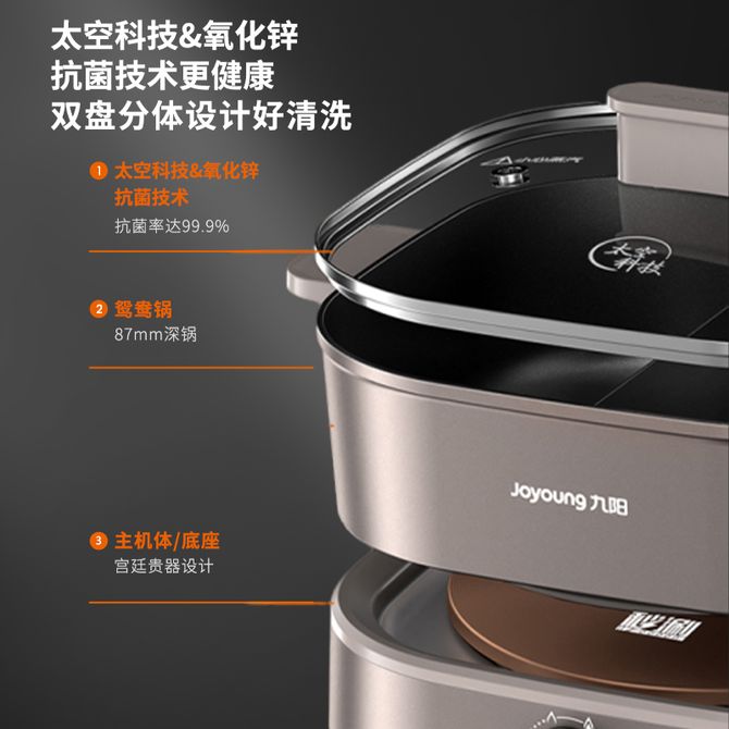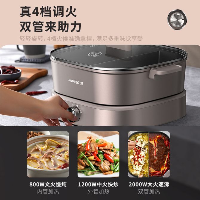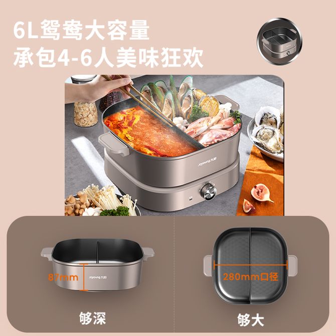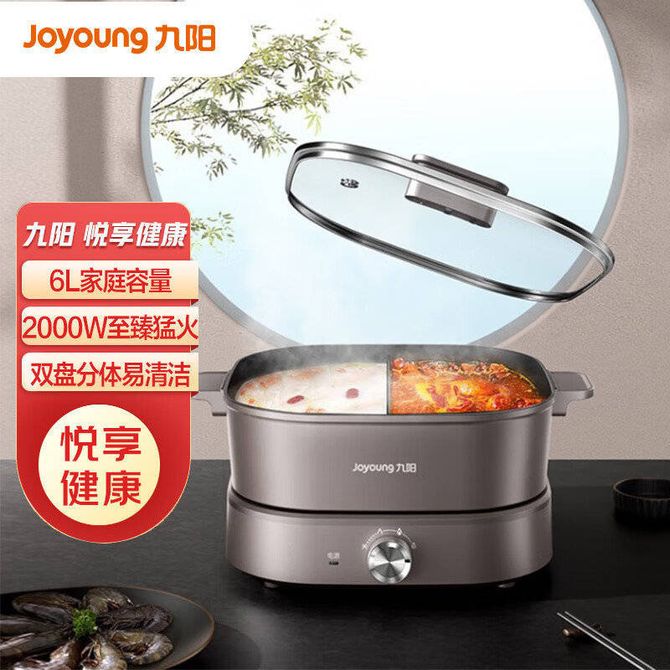九阳/Joyoung 电火锅 6L大容量家用多功能分体式烤肉锅电煮锅煎烤涮肉鸳鸯锅带烤盘