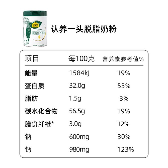 认养一头牛ADOPT A COW 脱脂营养奶粉800gX2罐礼盒新老包装随机发货 中老年营养冲饮早餐奶粉 兑换价格 7200 里程 会员卡别 终身白金卡 白金卡 金卡 银卡 普通卡 儿童卡 服务 由 罗迪诺食品专营店 发货并提供售后 规格: 礼盒 购买数量: 件 库存件 配送地址: 立即购买 加入购物车 成功添加到购物车 关闭 购物车共有 种商品 总金额为: 组合销售 产品介绍 产品规格 售后服务 产品咨询 发现好货 蒙牛 铂金装 中老年奶粉400g 益生菌高钙富硒成人奶粉 便捷条装 1400 里程 蒙牛 铂金装中老年益生菌高钙富硒成人奶粉800g罐装0蔗糖营养送礼 2800 里程 蒙牛 中老年高钙低脂成人奶粉800g罐装 2400 里程 蒙牛 悠瑞 金装中老年奶粉400g 高钙富硒成人奶粉 营养冲饮 1400 里程 蒙牛 中老年低脂高钙高纤奶粉800g/罐 2500 里程