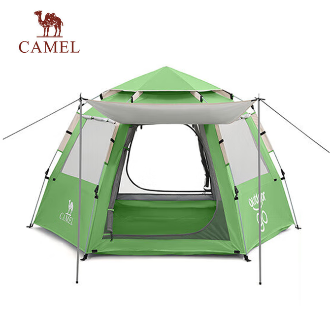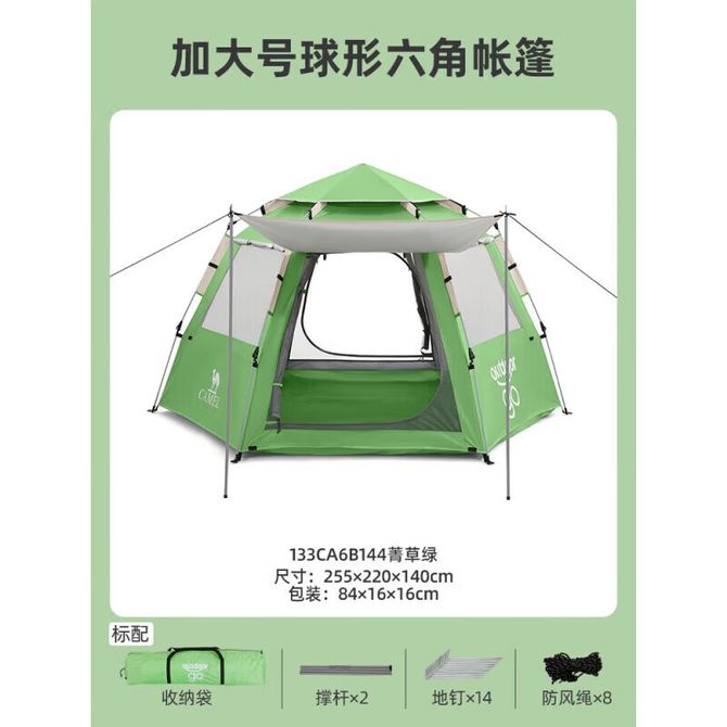 骆驼/Camel 户外露营防晒钛银六角自动速开便携式折叠帐篷133CA6B144菁草绿 配件:收纳袋x1、地钉x14、风绳x8、撑杆x2 兑换价格 14200 里程 会员卡别 终身白金卡 白金卡 金卡 银卡 普通卡 儿童卡 服务 由 劲芳体育生活馆 发货并提供售后 颜色: 绿色 购买数量: 件 库存件 配送地址: 立即购买 加入购物车 成功添加到购物车 关闭 购物车共有 种商品 总金额为: