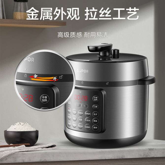 组合销售 产品介绍 产品规格 售后服务 产品咨询 发现好货 苏泊尔(SUPOR)电压力锅 6升大容量 智能触控 球釜双胆 开盖收汁 一键排压 SY-60YC8001Q 高压锅 16900 里程 苏泊尔(SUPOR) 5L电压力锅家用电高压锅双胆高压电饭锅煮饭智能预约 SY-50YC8186 11300 里程 美的/Midea 电压力锅 【一锅双胆】5L全自动家用智能预约 上蒸下煮 不粘双胆煲汤炖肉 YL50Q3-451 10900 里程 美的/Midea 电压力锅 【双胆】5升大容量电饭煲全自动智能饭锅多功能高压锅 24小时智能预约 MY-E523 10400 里程 九阳/Joyoung 电压力锅5L家用电饭锅压力煲电高压锅煮饭锅电饭锅电饭煲全自动智能预约 Y-50C31 11000 里程