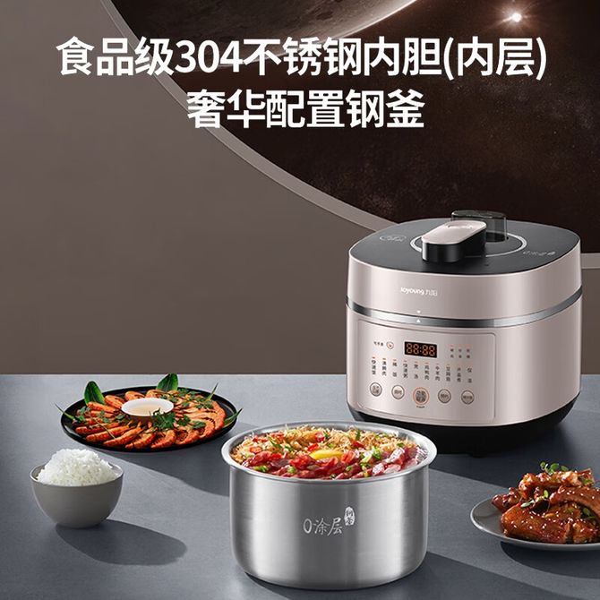 九阳/Joyoung 电压力锅 高压锅0涂层电饭煲压力锅不锈钢钢釜5升压力煲风冷降压煮饭煲汤 0涂层钢釜 风冷降压快速开盖 1000W底盘加热 兑换价格 19100 里程 会员卡别 终身白金卡 白金卡 金卡 银卡 普通卡 儿童卡 服务 由 聚品惠家电生活馆 发货并提供售后 颜色: 其他 购买数量: 件 库存件 配送地址: 立即购买 加入购物车 成功添加到购物车 关闭 购物车共有 种商品 总金额为: 组合销售 产品介绍 产品规格 售后服务 产品咨询 发现好货 苏泊尔(SUPOR)电压力锅 6升大容量 智能触控 球釜双胆 开盖收汁 一键排压 SY-60YC8001Q 高压锅 16900 里程 苏泊尔(SUPOR) 5L电压力锅家用电高压锅双胆高压电饭锅煮饭智能预约 SY-50YC8186 11300 里程 美的/Midea 电压力锅 【一锅双胆】5L全自动家用智能预约 上蒸下煮 不粘双胆煲汤炖肉 YL50Q3-451 10900 里程 美的/Midea 电压力锅 【双胆】5升大容量电饭煲全自动智能饭锅多功能高压锅 24小时智能预约 MY-E523 10400 里程 九阳/Joyoung 电压力锅5L家用电饭锅压力煲电高压锅煮饭锅电饭锅电饭煲全自动智能预约 Y-50C31 11000 里程