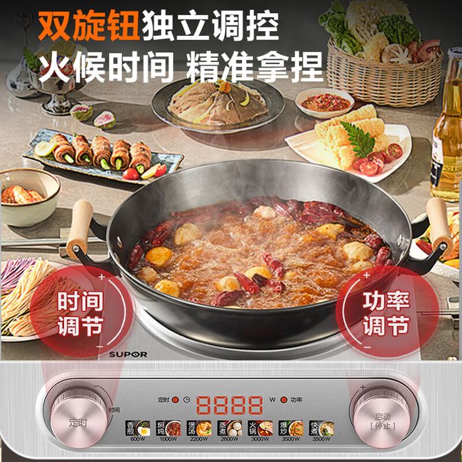 苏泊尔(SUPOR) 电磁炉C35-IA802D 家用大功率凹面3500W爆炒电磁灶电陶炉电池炉火锅炉炒菜定时电炉电火灶 家用大功率凹面3500W爆炒电磁灶电陶炉电池炉火锅炉炒菜定时电炉电火灶 兑换价格 19100 里程 会员卡别 终身白金卡 白金卡 金卡 银卡 普通卡 儿童卡 服务 由 纳华优选 发货并提供售后 颜色: 银色 购买数量: 件 库存件 配送地址: 立即购买 加入购物车 成功添加到购物车 关闭 购物车共有 种商品 总金额为: 组合销售 产品介绍 产品规格 售后服务 产品咨询 发现好货 美的/Midea 电磁炉2100W大功率家用触控按键耐用面板八档火力定时功能防水电磁灶火锅炉C21-RT21E01 2100W大功率 6500 里程 美的(Midea) 电磁炉 家用大火力电池炉电磁灶 RT21E0105 7000 里程 美的(Midea)电磁炉商用2200W大功率配锅套装家用电磁灶触控MC-CL22Q1-405J 7800 里程 美的/Midea 电磁炉 家用大功率 4D防水面板 2200W大火力炒菜火锅不粘炒锅一体小型电磁灶 5700 里程 美的(Midea)电磁炉家用2200W大火力火锅炉汉森面板智能定时旋风防堵风机C22-RT22E01 7000 里程