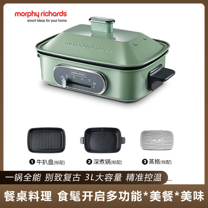 摩飞 /Morphy Richards 多功能锅 料理锅鸳鸯电热火锅家用大容量涮烤肉盘蒸煮煎炒一体锅 绿色 食品级防粘涂层, 过热自动保护,防干烧保护功能,可分离式安全插座 兑换价格 27800 里程 会员卡别 终身白金卡 白金卡 金卡 银卡 普通卡 儿童卡 服务 由 聚品惠家电生活馆 发货并提供售后 颜色: 其他 购买数量: 件 库存件 配送地址: 立即购买 加入购物车 成功添加到购物车 关闭 购物车共有 种商品 总金额为: