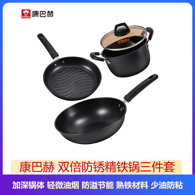 康巴赫 双倍防锈精铁锅三件套 炒锅+煎锅+汤锅加深锅体 轻微油烟锅具组合 加深锅体 轻微油烟 防溢节能 熟铁材料 少油防粘 不挑炉具 兑换价格 8300 里程 会员卡别 终身白金卡 白金卡 金卡 银卡 普通卡 儿童卡 服务 由 卓鹏商贸生活馆 发货并提供售后 颜色: 其他 购买数量: 件 库存件 配送地址: 立即购买 加入购物车 成功添加到购物车 关闭 购物车共有 种商品 总金额为: