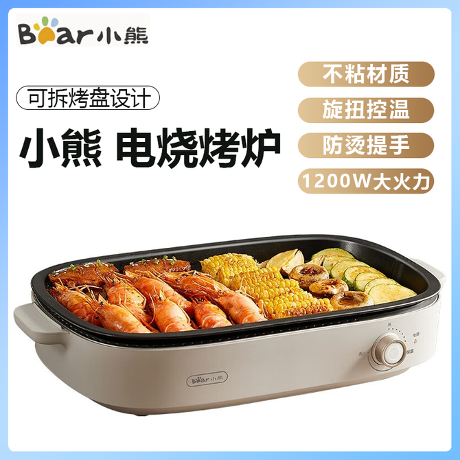 小熊/Bear 电烧烤炉烤肉锅 电烤盘 电烤炉烧烤 家用电烧烤炉1200W大功率 旋扭控温 防烫提手 1200W大火力 兑换价格 6100 里程 会员卡别 终身白金卡 白金卡 金卡 银卡 普通卡 儿童卡 服务 由 聚品惠家电生活馆 发货并提供售后 颜色: 其他 购买数量: 件 库存件 配送地址: 立即购买 加入购物车 成功添加到购物车 关闭 购物车共有 种商品 总金额为: