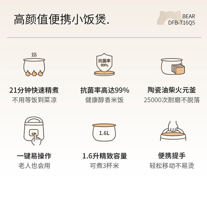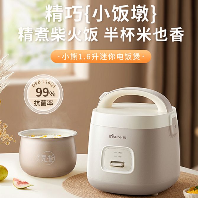 小熊/Bear 电饭煲家用1.6升迷你容量陶瓷油柴火元釜 智能控温烹煮电饭锅 21分钟快速精煮 抗菌率高达99% 陶瓷油柴火元釜 1.6升迷你电饭煲 兑换价格 6100 里程 会员卡别 终身白金卡 白金卡 金卡 银卡 普通卡 儿童卡 服务 由 中农创家电生活馆 发货并提供售后 颜色: 其他 购买数量: 件 库存件 配送地址: 立即购买 加入购物车 成功添加到购物车 关闭 购物车共有 种商品 总金额为: 组合销售 产品介绍 产品规格 售后服务 产品咨询 发现好货 苏泊尔(SUPOR) 电饭煲电饭锅4L大容量 不粘内胆4-6个人前置大屏面板24小时预约上蒸下煮多功能家用智能SF40FC0063 8300 里程 奥克斯/AUX 电饭煲3L电饭锅 2-3人小型预约智能电饭煲VK-309F2 5100 里程 苏泊尔(SUPOR) 迷你电饭煲家用电饭锅2-3人3L小容量蓝钻不粘内胆快煮饭功能智能预约小型多功能SF30FC0187 6100 里程 美菱/MELNG 电饭煲3L触控式预约定时MF-LC3005 4400 里程 苏泊尔(SUPOR) 煮饭煮粥智能预约多功能一锅多用小型微压电饭锅30FC0187 7200 里程