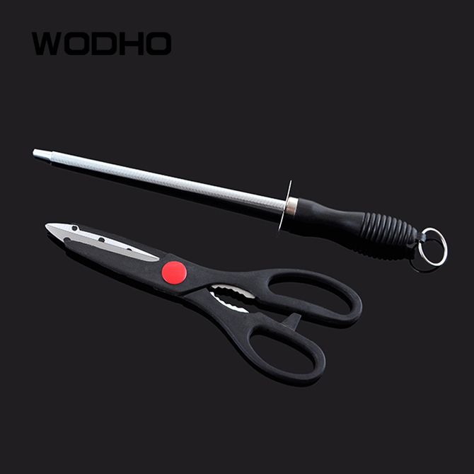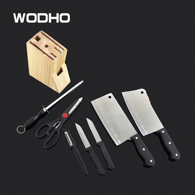 万德霍/WODHO 美食刃八件套厨房必备切片刀砍骨刀水果牙刀水果刀厨房剪削皮器磨刀棒刀架八件套 WDH-G0140559