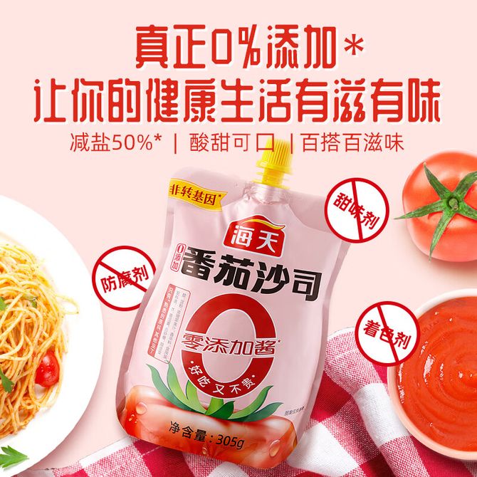 海天 0添加番茄沙司 0脂肪新疆番茄蔬菜沙拉调料调味品番茄酱 305g*3袋 该款新旧版本随机发货 0添加 0脂肪 优选新疆非转基因番茄 兑换价格 1100 里程 会员卡别 终身白金卡 白金卡 金卡 银卡 普通卡 儿童卡 服务 由 深圳房易通科技有限公司 发货并提供售后 规格: 袋装 购买数量: 件 库存件 配送地址: 立即购买 加入购物车 成功添加到购物车 关闭 购物车共有 种商品 总金额为: 组合销售 产品介绍 产品规格 售后服务 产品咨询 发现好货 康师傅 经典红烧牛肉面五连包104g*5袋泡面袋装方便面 1100 里程 锋味派 火山石烤肠 纯肉香肠 台湾脆皮热狗肠 烧烤空炸食材 【单盒装】原味黑猪肉 400g 3000 里程 白象 大辣娇 韩式火鸡面10袋 1300 里程 白象方便面经典老坛酸菜牛肉119g*12桶泡面整箱装 1700 里程 海天 黄豆酱800g*2(调味酱 甜面酱 拌饭拌面炒菜酱 酱料调料) 1300 里程