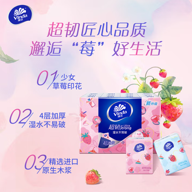 维达 手帕纸 餐巾纸小包纸巾 纸手帕 纸巾小包 便携小包 便携餐巾纸 【草莓手帕纸】 4层 5张*24包 24包/条,新旧随机发货 兑换价格 1100 里程 会员卡别 终身白金卡 白金卡 金卡 银卡 普通卡 儿童卡 服务 由 念家生活馆 发货并提供售后 包装数量: 1提 购买数量: 件 库存件 配送地址: 立即购买 加入购物车 成功添加到购物车 关闭 购物车共有 种商品 总金额为: 组合销售 产品介绍 产品规格 售后服务 产品咨询 发现好货 维达卷纸 卫生纸实惠装厕纸家用厕所纸巾手纸整箱批有芯大卷家庭装 1200-2300 里程 维达 Vinda 卷纸 140g/卷*10卷 蓝色经典3层卫生纸 1300 里程 心相印抽纸 茶语丝享系列 量贩家庭装 3层*100抽*4包(茶香 压花) 1100 里程 心相印 经典系列 二层面巾纸 180抽*6包*1提 1100 里程 维达Vinda 超韧系列抽纸(3层*130抽*6包) 原生木浆卫生餐巾纸婴儿面巾纸 6包优惠装 1100 里程
