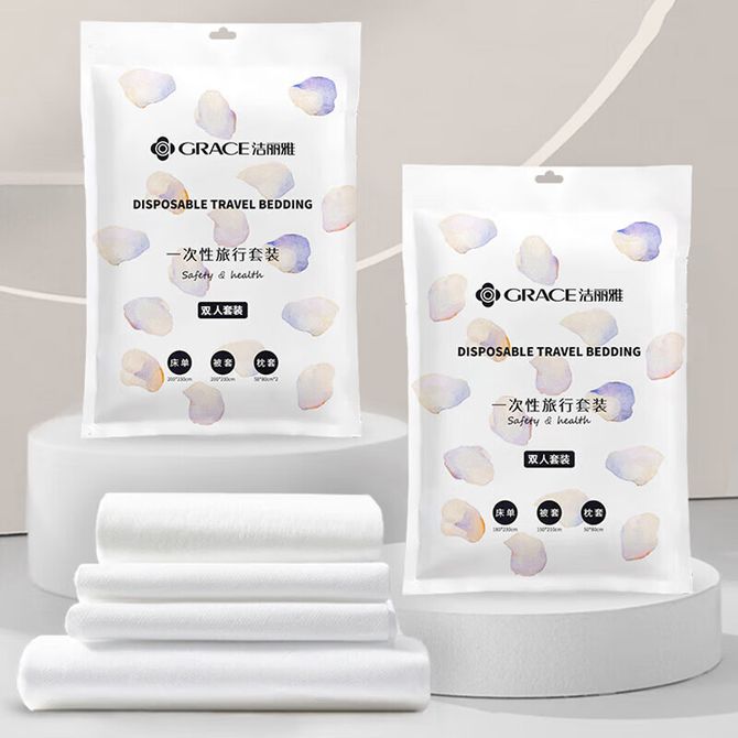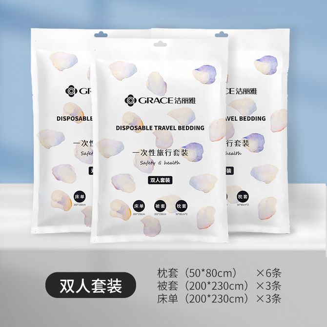 洁丽雅/Grace JA2035旅行一次性床单被套枕套双人四件套装旅游酒店床上用品3包 13011514 型号:JA2035 组合:三包装 材质:无纺布 规格:枕套(50*80)×2条、被套(200*230)×1条、床单(200*230)×1条 克 重:330g 兑换价格 2200 里程 会员卡别 终身白金卡 白金卡 金卡 银卡 普通卡 儿童卡 服务 由 吉时雨居家生活馆 发货并提供售后 被、单尺寸: 200*230cm 颜色: 白色 购买数量: 件 库存件 配送地址: 立即购买 加入购物车 成功添加到购物车 关闭 购物车共有 种商品 总金额为: