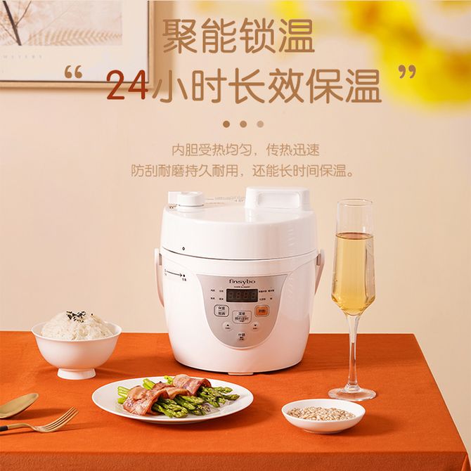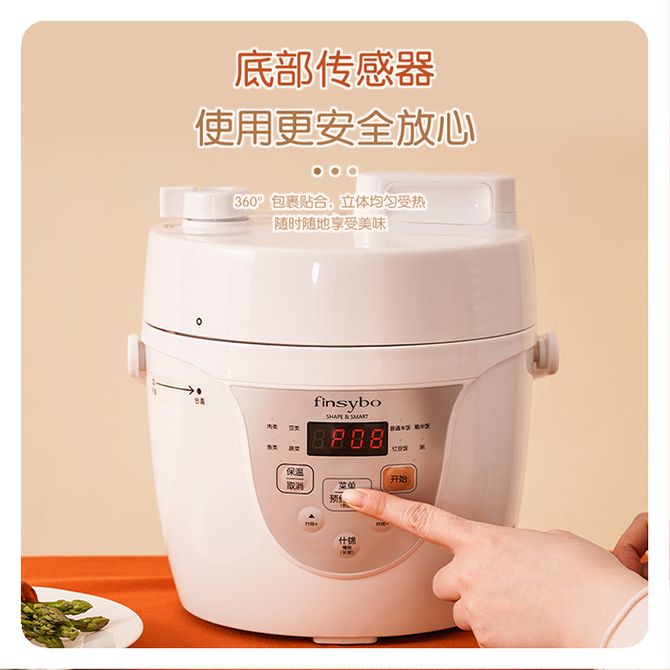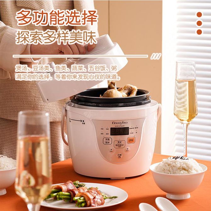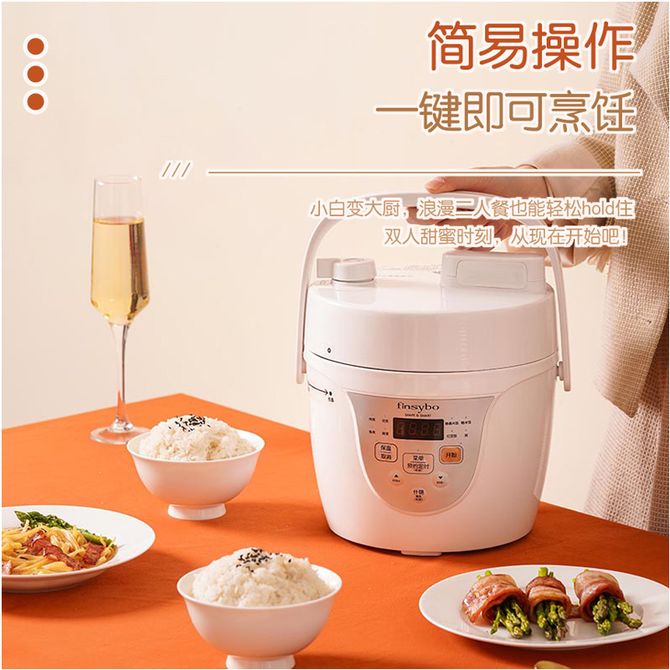 finsybo 电压力锅 小容量电饭煲快捷煮饭一键操作电饭锅多功能煮饭锅煮粥锅 2L小巧外观 700W功率省电不跳闸 一键烹煮简易操作 兑换价格 11700 里程 会员卡别 终身白金卡 白金卡 金卡 银卡 普通卡 儿童卡 服务 由 中农创家电生活馆 发货并提供售后 颜色: 其他 购买数量: 件 库存件 配送地址: 立即购买 加入购物车 成功添加到购物车 关闭 购物车共有 种商品 总金额为: 组合销售 产品介绍 产品规格 售后服务 产品咨询 发现好货 苏泊尔(SUPOR)电压力锅 6升大容量 智能触控 球釜双胆 开盖收汁 一键排压 SY-60YC8001Q 高压锅 16900 里程 美的/Midea 电压力锅家用5L大容量多功能高压锅双胆一键收汁智能预约不粘电高压锅电饭锅煮粥煲汤锅 一锅双胆【一键收汁入味】 YL50M1-702 10600 里程 苏泊尔(SUPOR) 5L电压力锅家用电高压锅双胆高压电饭锅煮饭智能预约 SY-50YC8186 11300 里程 美的/Midea 电压力锅 【一锅双胆】5L全自动家用智能预约 上蒸下煮 不粘双胆煲汤炖肉 YL50Q3-451 10900 里程 美的/Midea 电压力锅 高压锅家用电压力煲智能预约电饭煲大容量多功能定时预约电饭煲3-8人单胆旋钮款4L MY-E4809 8700 里程
