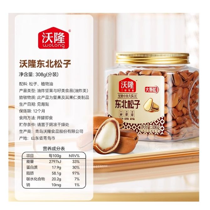 沃隆 东北特级大松子308g罐装850级别