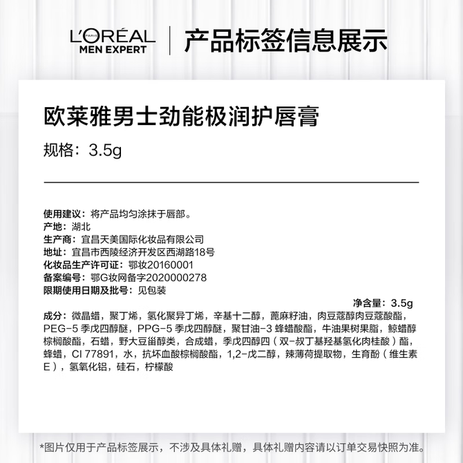 欧莱雅(LOREAL) 男士劲能极润唇膏护唇膏3.5g 补水保湿防嘴唇干裂脱皮秋冬滋润 深层滋润 哑光不油 兑换价格 1700 里程 会员卡别 终身白金卡 白金卡 金卡 银卡 普通卡 儿童卡 服务 由 合玖联生活馆 发货并提供售后 分类: 润唇膏/啫喱 颜色: 其他 购买数量: 件 库存件 配送地址: 立即购买 加入购物车 成功添加到购物车 关闭 购物车共有 种商品 总金额为: 组合销售 产品介绍 产品规格 售后服务 产品咨询 发现好货 蝶翠诗(DHC)橄榄护唇膏 1.5g 3400 里程 欧舒丹(L'OCCITANE)甜蜜樱花润唇膏 12ml 4200 里程 蝶翠诗(DHC)橄榄护唇膏 1.5g *2支 6100 里程 DIOR 魅惑变色润唇膏 滋润显色保湿 004# 珊瑚色 16600 里程 伊丽莎白雅顿(Elizabeth Arden) 润泽唇膏3.7g SPF15 保湿补水滋润防晒润唇膏 3000 里程