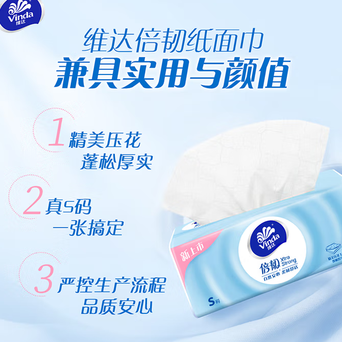组合销售 产品介绍 产品规格 售后服务 产品咨询 发现好货 维达卷纸 卫生纸实惠装厕纸家用厕所纸巾手纸整箱批有芯大卷家庭装 1200-2300 里程 维达 Vinda 卷纸 140g/卷*10卷 蓝色经典3层卫生纸 1300 里程 心相印抽纸 茶语丝享系列 量贩家庭装 3层*100抽*4包(茶香 压花) 1100 里程 心相印 经典系列 二层面巾纸 180抽*6包*1提 1100 里程 维达Vinda 超韧系列抽纸(3层*130抽*6包) 原生木浆卫生餐巾纸婴儿面巾纸 6包优惠装 1100 里程