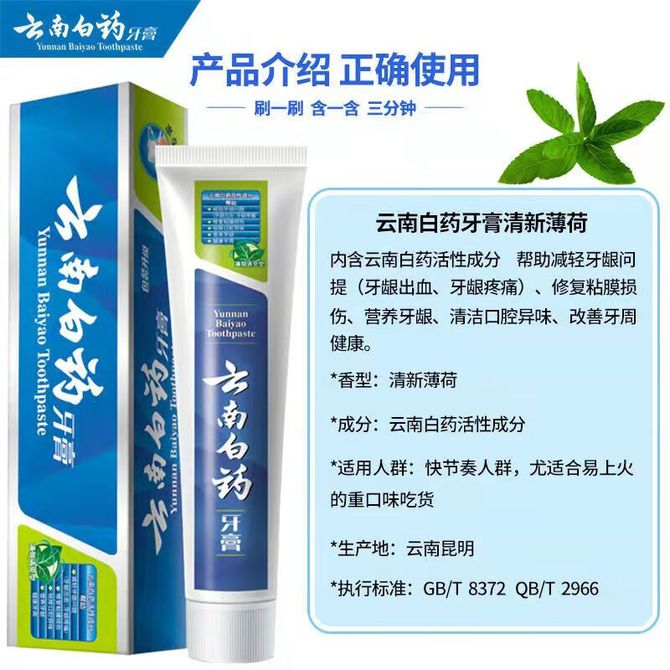 - 云南白药 牙膏薄荷香型100g减轻牙龈问题清新口气祛除口腔异味