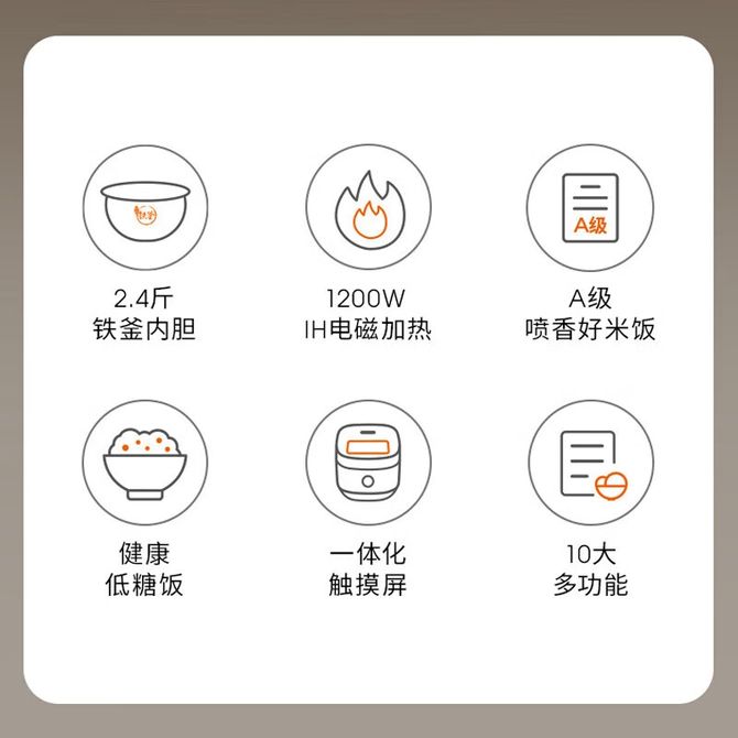 九阳/Joyoung 电饭煲IH电磁加热低糖铁釜多功能电饭锅 2.4斤铁釜内胆,1200W IH电磁加热,A级喷香好米饭,一体化触摸屏,健康低糖饭,10大多功能 兑换价格 21300 里程 会员卡别 终身白金卡 白金卡 金卡 银卡 普通卡 儿童卡 服务 由 中农创家电生活馆 发货并提供售后 颜色: 其他 购买数量: 件 库存件 配送地址: 立即购买 加入购物车 成功添加到购物车 关闭 购物车共有 种商品 总金额为: 组合销售 产品介绍 产品规格 售后服务 产品咨询 发现好货 苏泊尔(SUPOR) 电饭煲电饭锅4L大容量 不粘内胆4-6个人前置大屏面板24小时预约上蒸下煮多功能家用智能SF40FC0063 8300 里程 奥克斯/AUX 电饭煲3L电饭锅 2-3人小型预约智能电饭煲VK-309F2 5100 里程 苏泊尔(SUPOR) 迷你电饭煲家用电饭锅2-3人3L小容量蓝钻不粘内胆快煮饭功能智能预约小型多功能SF30FC0187 6100 里程 美菱/MELNG 电饭煲3L触控式预约定时MF-LC3005 4400 里程 苏泊尔(SUPOR) 煮饭煮粥智能预约多功能一锅多用小型微压电饭锅30FC0187 7200 里程