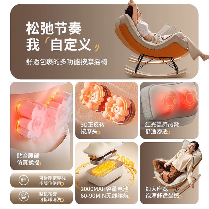 组合销售 产品介绍 产品规格 售后服务 产品咨询 发现好货 奥克斯 按摩椅家用全身智能小型折叠沙发颈椎腰背部揉捏电动摇摇椅 34700 里程 奥克斯 按摩椅家用摇摇椅小型懒人沙发按摩垫全身躺靠垫肩颈腰背部按摩午休客厅卧室阳台办公室可折叠 32600 里程 奥克斯 按摩椅家用全身全自动智能电动揉捏十多功能大品牌2025新款 112200 里程 摩飞 /Morphy Richards 按摩仪器背部腿部颈椎按摩器靠垫敷按摩靠枕护腰坐垫 摩飞按摩靠垫 MR2132 12600 里程 践程JeoyCosy豪华按摩椅家用全身智能按摩器沙发椅颈椎腰部按摩气囊按摩椅热敷按摩仪送爸妈礼物香槟咖 130400 里程