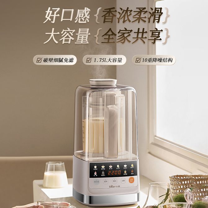 小熊/Bear 新款破壁机干豆直打 家用豆浆机榨汁机料理机大功率熬煮宝宝辅食机奶昔 米糊机 干豆直打 加大容量 12大菜单 触控大屏 香浓细腻 兑换价格 14400 里程 会员卡别 终身白金卡 白金卡 金卡 银卡 普通卡 儿童卡 服务 由 广西自贸区京通桂达科技发展有限公司 发货并提供售后 颜色: 其他 购买数量: 件 库存件 配送地址: 立即购买 加入购物车 成功添加到购物车 关闭 购物车共有 种商品 总金额为: 组合销售 产品介绍 产品规格 售后服务 产品咨询 发现好货 WIFER 豆浆机大容量破壁机料理机全自动榨汁机免滤304钢1200ML 3500 里程 WIFER 豆浆机全自动静音大容量多功能免煮免过滤辅食榨汁破壁机316钢不锈钢豆浆机米色豆浆机1.2L 4400 里程 九阳 Joyoung 破壁免洗豆浆机0.4-1.5L超大容量 智能熬煮多功能 轻松预约DJ15E-K350 52200 里程 小熊/Bear 豆浆机1-2人家用免过滤免煮五谷杂粮多功能破壁机豆浆机小型迷你榨汁机高温一键清洗 米白色 DJJ-H05C1 6700 里程 摩 动/modong 豆浆机家用破壁机 全自动免煮辅食料理榨汁机 多功能小型预约保温 白色 1.2L -MD-DJ29 7400 里程