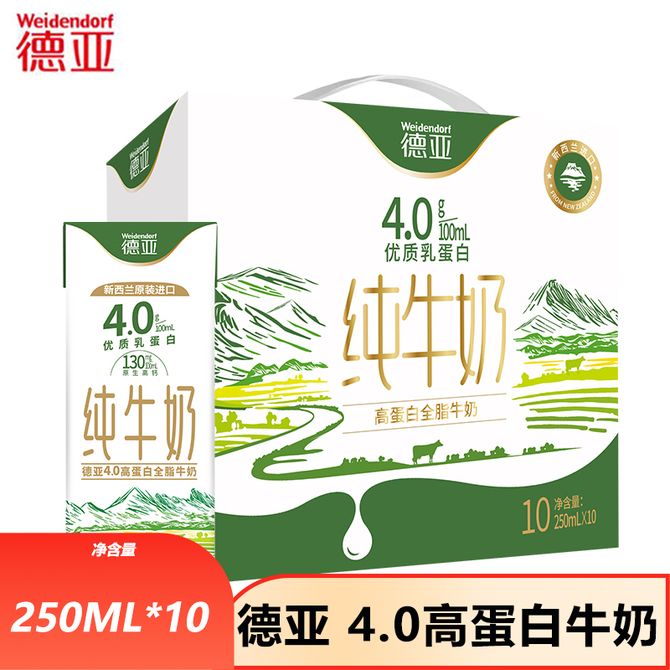 德亚 4.0高蛋白牛奶礼盒250ML*10 全脂纯牛奶营养早餐奶高端优质牛奶 250ML*10 兑换价格 2600 里程 会员卡别 终身白金卡 白金卡 金卡 银卡 普通卡 儿童卡 服务 由 广西桂人礼互联网科技有限公司 发货并提供售后 规格: 礼盒 购买数量: 件 库存件 配送地址: 立即购买 加入购物车 成功添加到购物车 关闭 购物车共有 种商品 总金额为: 组合销售 产品介绍 产品规格 售后服务 产品咨询 发现好货 蒙牛 特仑苏纯牛奶苗条装250ml×12盒 2900 里程 三元 经典小方白全脂纯牛奶250ml*24盒牛奶 整箱 3400 里程 伊利金典纯牛奶250ml*12盒整箱 2200 里程 伊利 金典纯牛奶整箱 250ml*12盒 3.6g乳蛋白 原生高钙 礼盒装 1800 里程 特仑苏 新日期纯牛奶250ml*12盒 3.6g乳蛋白 礼盒装 京东/顺丰发货 2400 里程
