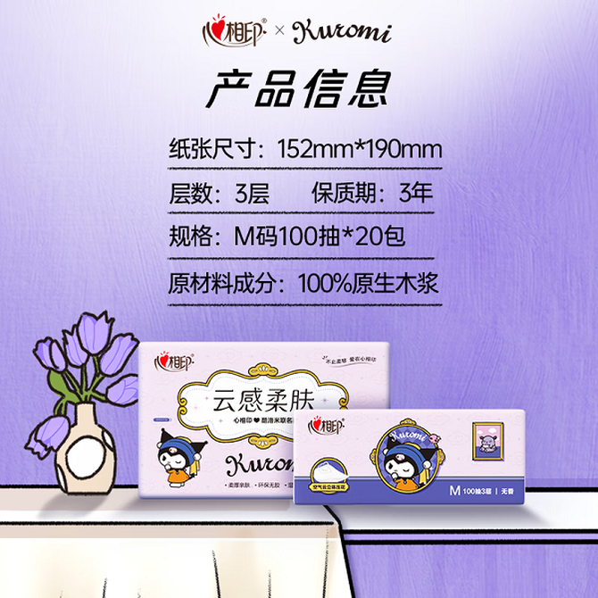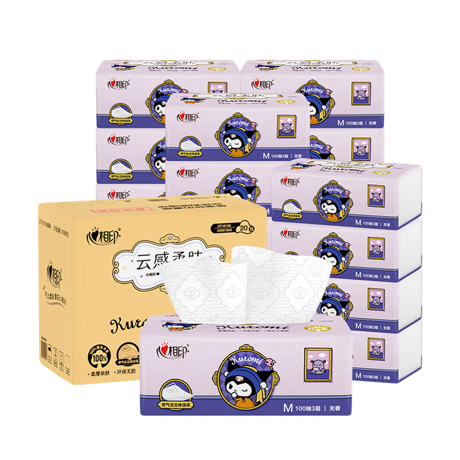心相印(Mind Act Upon Mind) 三丽鸥联名抽纸 3层100抽*20包 M码面巾纸库洛米款可湿水餐巾纸便携 兑换遇到问题请联系客服4000315007 兑换价格 2700 里程 会员卡别 终身白金卡 白金卡 金卡 银卡 普通卡 儿童卡 服务 由 索创生活馆 发货并提供售后 包装数量: 箱 购买数量: 件 库存件 配送地址: 立即购买 加入购物车 成功添加到购物车 关闭 购物车共有 种商品 总金额为: 组合销售 产品介绍 产品规格 售后服务 产品咨询 发现好货 维达卷纸 卫生纸实惠装厕纸家用厕所纸巾手纸整箱批有芯大卷家庭装 1200-2300 里程 维达 Vinda 卷纸 140g/卷*10卷 蓝色经典3层卫生纸 1300 里程 心相印抽纸 茶语丝享系列 量贩家庭装 3层*100抽*4包(茶香 压花) 1100 里程 心相印 经典系列 二层面巾纸 180抽*6包*1提 1100 里程 维达Vinda 超韧系列抽纸(3层*130抽*6包) 原生木浆卫生餐巾纸婴儿面巾纸 6包优惠装 1100 里程