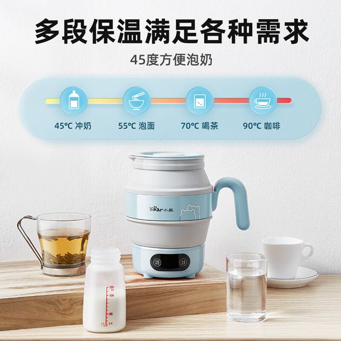 小熊/Bear 便携式烧水壶电水壶折叠水壶 304不锈钢烧水杯旅行家用恒温水壶养生冲奶保温电热水壶 婴儿用硅胶材质好材质·煮水放心 小巧便携轻便小巧·易收纳 可折叠壶身轻松折叠收纳 兑换价格 5200 里程 会员卡别 终身白金卡 白金卡 金卡 银卡 普通卡 儿童卡 服务 由 聚品惠家电生活馆 发货并提供售后 颜色: 其他 购买数量: 件 库存件 配送地址: 立即购买 加入购物车 成功添加到购物车 关闭 购物车共有 种商品 总金额为: 组合销售 产品介绍 产品规格 售后服务 产品咨询 发现好货 苏泊尔(SUPOR)电水壶 1.7L 不锈钢/YL SW-17S13A 5700 里程 志高/Chigo 电水壶烧水壶1.8L大容量电热水壶双层防烫自动断电家用烧水开水壶不锈钢 电水壶 DC-A18F 1900 里程 美的/Midea 电热水壶家用大容量烧水壶热水壶双层防烫电水壶304不锈钢内胆自动断电分离式拔盖 MK-SH15X1-102 3000 里程 小熊/Bear 电水壶家用烧水壶 不锈钢自动断电恒温热水壶保温一体电热水壶1.5L容量 3500 里程 小熊/Bear 烧水壶电水壶热水壶电热水壶开水壶304不锈钢内胆双层防烫1.5L大容量ZDH-Q15U8 3000 里程