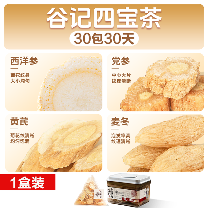 谷记老谷头/GUJILAOGUTOU 元气四宝茶240g(30包) 西洋参党参黄芪麦冬 老谷头袋装元气四宝茶便携三角包黄芪麦冬西洋参党参组合茶滋补养生茶 1盒装元气四宝茶 兑换价格 5300 里程 会员卡别 终身白金卡 白金卡 金卡 银卡 普通卡 儿童卡 服务 由 啊兔食品专营店 发货并提供售后 规格: 盒装 购买数量: 件 库存件 配送地址: 立即购买 加入购物车 成功添加到购物车 关闭 购物车共有 种商品 总金额为:
