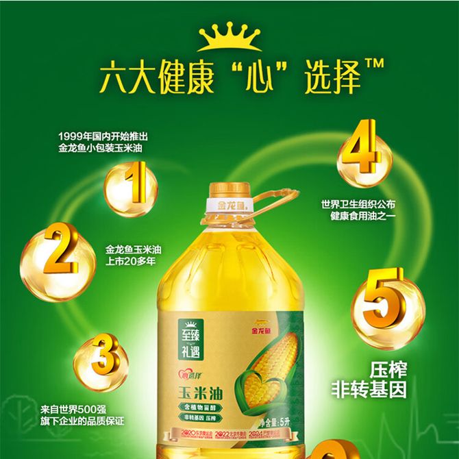 金龙鱼 玉米油5L至臻礼遇家用炒菜烹饪食用玉米油 至臻礼遇玉米油5L 兑换价格 4400 里程 会员卡别 终身白金卡 白金卡 金卡 银卡 普通卡 儿童卡 服务 由 广西桂人礼互联网科技有限公司 发货并提供售后 油品规格: 5L 购买数量: 件 库存件 配送地址: 立即购买 加入购物车 成功添加到购物车 关闭 购物车共有 种商品 总金额为: 组合销售 产品介绍 产品规格 售后服务 产品咨询 发现好货 长寿花 金胚玉米油食用油非转基因压榨一级 1.8L 2200 里程 珍佰粮菜籽油5L 5500 里程 福临门 一级大豆油900ML/瓶 优质家用食用油 1100 里程 福临门 家香味食用油 沂蒙土榨 花生仁油900ml 1600 里程 金龙鱼 浓香花生油5L 大桶装物理压榨一级厨房烹饪炒菜植物油粮油家庭食用油 浓香花生油食用油 5000 里程