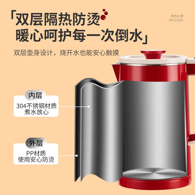 组合销售 产品介绍 产品规格 售后服务 产品咨询 发现好货 苏泊尔(SUPOR)电水壶 1.7L 不锈钢/YL SW-17S13A 5700 里程 志高/Chigo 电水壶烧水壶1.8L大容量电热水壶双层防烫自动断电家用烧水开水壶不锈钢 电水壶 DC-A18F 1900 里程 小熊/Bear 电水壶家用烧水壶 不锈钢自动断电恒温热水壶保温一体电热水壶1.5L容量 3500 里程 小熊/Bear 烧水壶电水壶热水壶电热水壶开水壶304不锈钢内胆双层防烫1.5L大容量ZDH-Q15U8 3000 里程 志高(CHIGO) 电水壶1.8L大容量烧水壶家用热水壶开水壶DC-A18F 1900 里程
