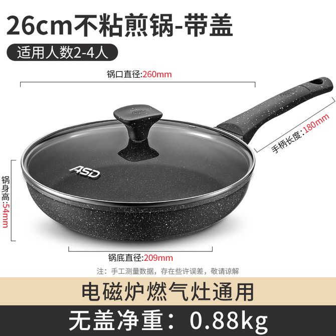 爱仕达/ASD 平底锅聚油不凸底不粘锅煎锅麦饭石色 有盖款式 26cm 不粘锅煎锅麦饭石色 有盖款式 JL26S11WG-D 兑换价格 5000 里程 会员卡别 终身白金卡 白金卡 金卡 银卡 普通卡 儿童卡 服务 由 海籍厨具生活专营店 发货并提供售后 颜色: 黑色 购买数量: 件 库存件 配送地址: 立即购买 加入购物车 成功添加到购物车 关闭 购物车共有 种商品 总金额为: 组合销售 产品介绍 产品规格 售后服务 产品咨询 发现好货 炊大皇(COOKER KING) 星空不粘煎锅 26cm不带盖 WG41357 平底锅家用无油烟 2200 里程 苏泊尔(SUPOR)j火红点不粘锅 平底锅煎锅炒锅 电磁炉燃气炒菜锅牛排煎蛋锅PJ28R4 7700 里程 张小泉 锤纹精铁煎锅26cm家用不粘锅煎蛋锅煎牛排平底锅煎锅 3000 里程 张小泉 正品平底锅26cm家用不粘锅煎锅 无涂层锤纹精铁煎锅C32850100 3000 里程 九阳/Joyoung 煎锅平底锅不粘锅家用24cm小煎锅煎蛋饼牛排煎锅JLW2401 2200 里程