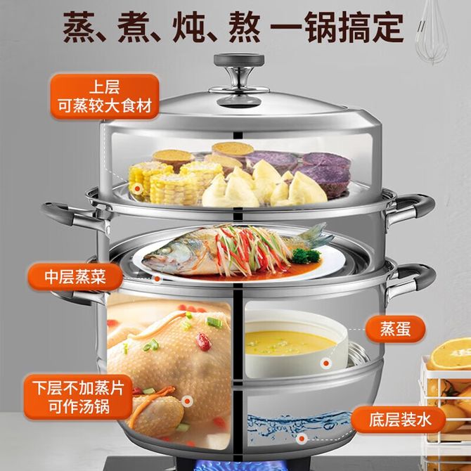 组合销售 产品介绍 产品规格 售后服务 产品咨询 发现好货 苏泊尔(SUPOR) 蒸锅不锈钢28cm复底双层SZ28B5蒸鱼蒸馒头蒸馍大蒸锅蒸笼 8700 里程 德铂(Debo)汤锅不锈钢单层蒸锅蒸笼电磁炉两用锅艾琳诺26cm DEP-DS146 2100 里程 拜格(Bayco) 蒸锅三层家用蒸馒头煲汤加厚汤锅BG1548【28cm】 3000 里程 炊大皇(COOKER KING) 304不锈钢三层蒸锅家用复合底汤锅蒸馒头包子可视可立高拱盖30cm 6100 里程 德铂(Debo) 科洛姆双层蒸锅不锈钢汤锅20cm不挑炉灶DEP-913 2600 里程